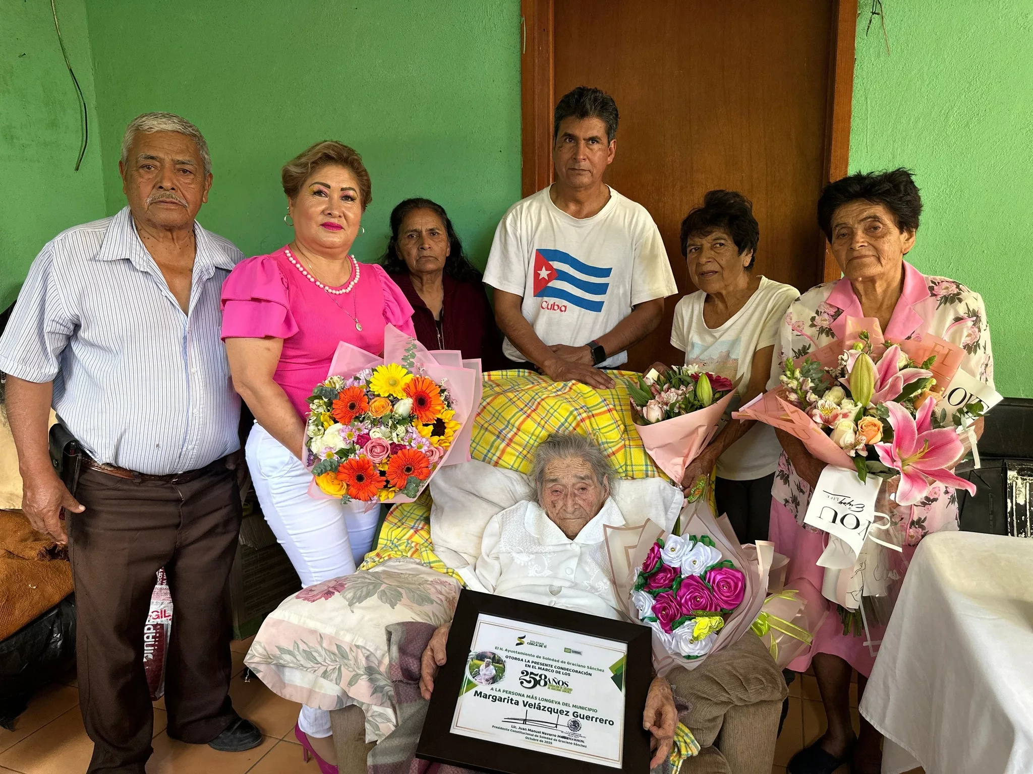 Por ser un ejemplo de ciudadana entregada a su comunidad y reflejo del esfuerzo y los valores que distinguen a las familias soledenses, doña Margarita recibió un reconocimiento a nombre del Alcalde de Soledad de Graciano Sánchez, Juan Manuel Navarro Muñiz.