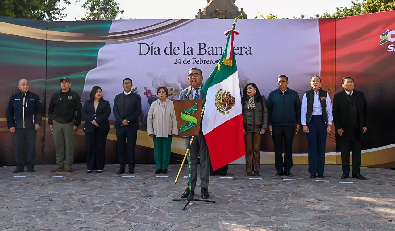 La ceremonia inició con Honores a la Bandera y continuó con la toma de protesta a cargo del Alcalde, quien, con bandera en mano, dirigió el tradicional juramento: “Al concederles el amparo de su sombra, espero que como buenos y leales mexicanos sabrán cumplir su promesa”. Posteriormente, Adrián Mateo Piña Reséndiz realizó el Juramento a la Bandera; se efectuó el saludo nominal con el canto a la Bandera de Julián Carrillo y se entonó el Himno Nacional Mexicano, con la participación de las y los alumnos de la Secundaria «21 de Marzo».