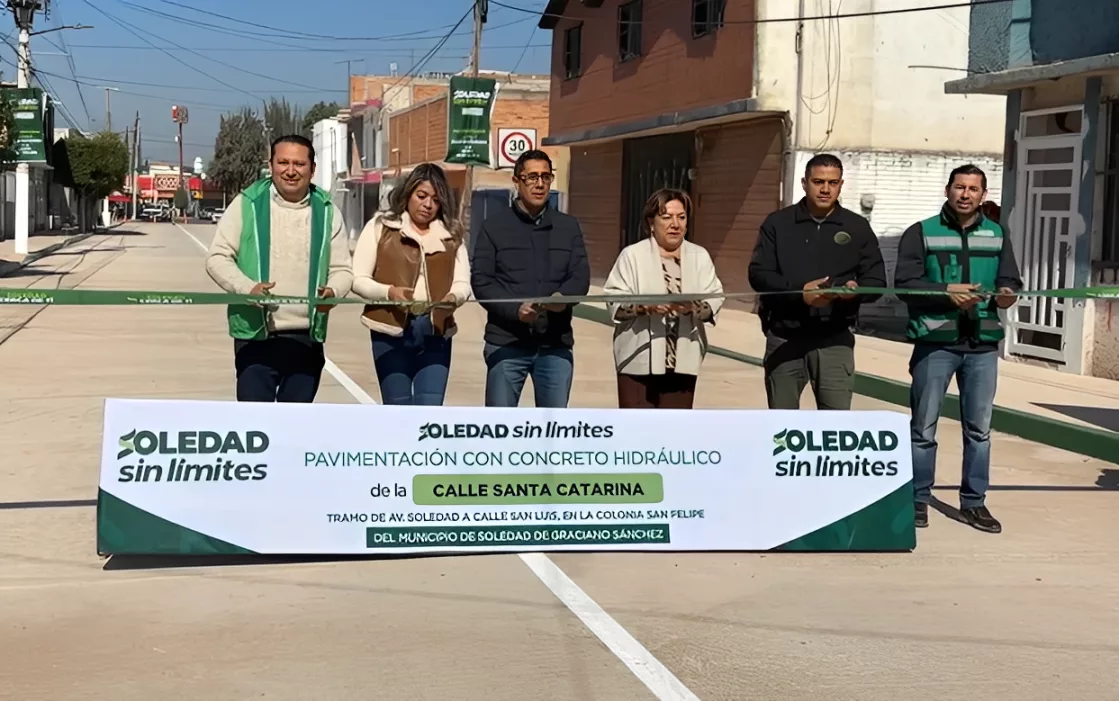 Con la presencia de autoridades estatales, municipales y vecinos de la colonia, este martes se inauguró la pavimentación con concreto hidráulico en la calle Santa Catarina, tramo de Avenida Soledad a Calle San Luis en la colonia San Felipe, en el municipio de Soledad de Graciano Sánchez. La obra, que forma parte de un plan integral de desarrollo para la zona, representa una inversión superior a los 3 millones de pesos y marca un hito para una comunidad que, como reconocieron varias voces durante el evento, había sido olvidada por décadas.
