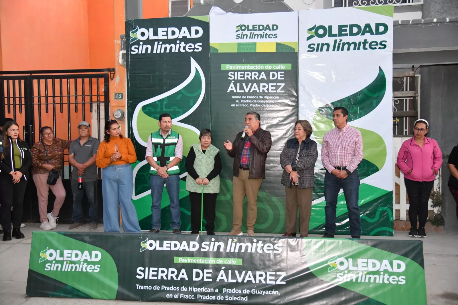 Juan Manuel Navarro Muñiz, Alcalde de Soledad de Graciano Sánchez, encabezó el arranque de la pavimentación con carpeta asfáltica de la calle Sierra de Álvarez, en el tramo que conecta Prados de Hipericán con Prados de Guayacán, beneficiando a más de dos mil habitantes del fraccionamiento Prados de Soledad; con una inversión superior a un millón de pesos, la obra forma parte de la estrategia municipal para atender directamente el sentir de la población y responder a necesidades prioritarias, especialmente frente a la falta de mantenimiento por parte de INTERAPAS.