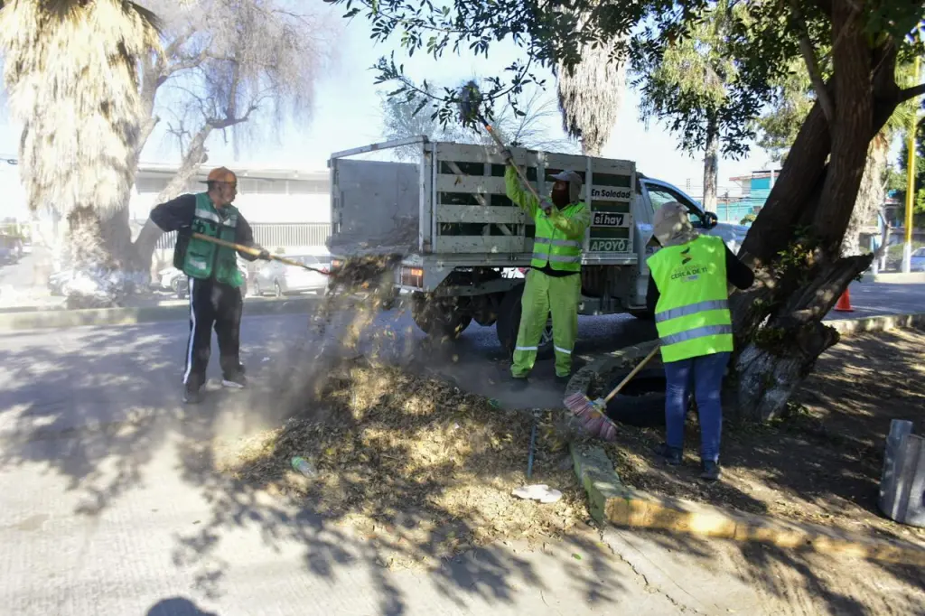 Con acciones contundentes para mejorar la imagen urbana y ofrecer entornos seguros, el Ayuntamiento de Soledad de Graciano Sánchez mantiene desde el inicio del año un programa permanente de limpieza integral en avenidas, camellones, áreas verdes y espacios recreativos de distintas colonias del municipio, realizando barrido manual, deshierbe, poda de árboles y plantas, así como recolección de basura y desechos.