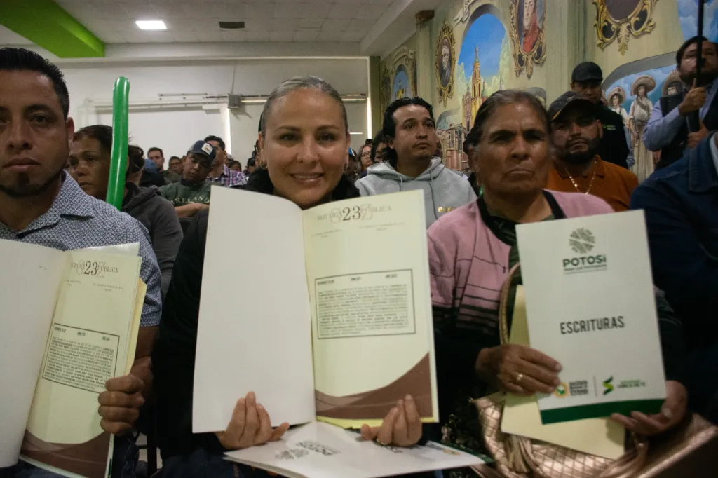 Como resultado de la política de certeza patrimonial que impulsa el Ayuntamiento de Soledad de Graciano Sánchez, este año 2025, se logró la entrega aproximada de 365 escrituras de predios a familias del municipio, resultado del trabajo permanente del Instituto Municipal de la Vivienda (INMUVISO) lo que da muestra del compromiso de estar cerca de la población, escuchar y atender a quienes por años esperaron regularizar su vivienda, una instrucción clara y firme del Alcalde Juan Manuel Navarro Muñiz.