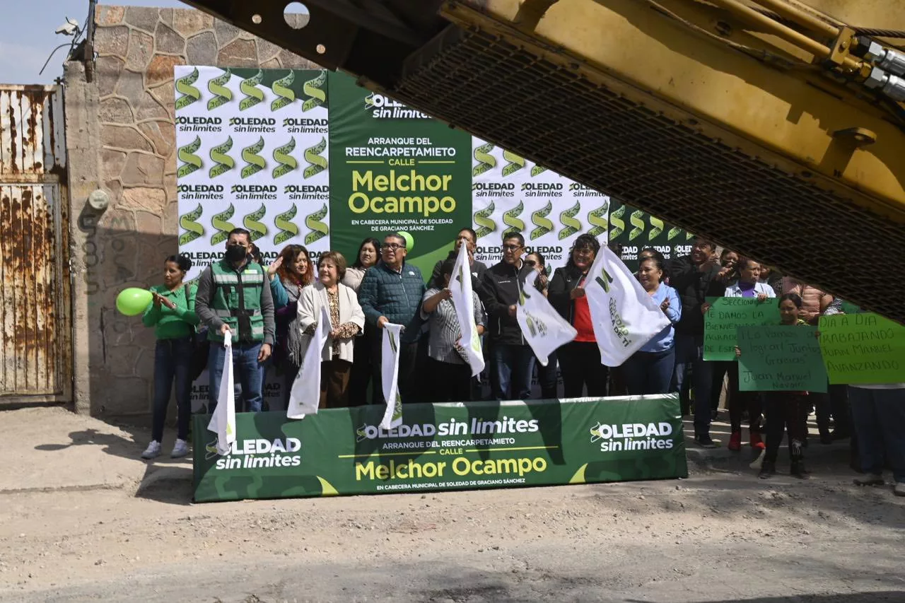Juan Manuel Navarro Muñiz, Presidente municipal de Soledad de Graciano Sánchez, reiteró su compromiso con la movilidad, el dinamismo económico y la plusvalía de las familias en la Cabecera municipal, al informar el avance positivo de la pavimentación de la calle Melchor Ocampo, obra cuya culminación fue anunciada con un tiempo récord de 10 días, para garantizar un acceso principal al Jardín Hidalgo en óptimas condiciones.