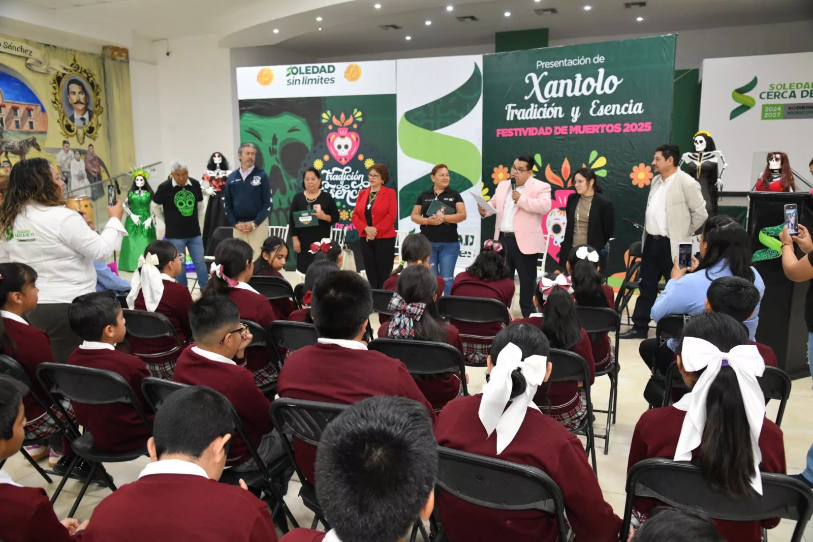 En el marco de las festividades del Día de Muertos, este lunes, el Ayuntamiento de Soledad de Graciano Sánchez, a través de la Coordinación de Bibliotecas Municipales, llevó a cabo la premiación del Concurso de Calaveritas Literarias, en el que participaron más de 400 alumnos y alumnas de nivel primaria; la convocatoria impulsada por la administración municipal, tuvo como base que las calaveritas estuvieran dedicadas al Alcalde Juan Manuel Navarro Muñiz o al Gobernador del Estado, Ricardo Gallardo Cardona, y cumplieran con rima y creatividad, promoviendo la lectura y escritura entre la niñez.