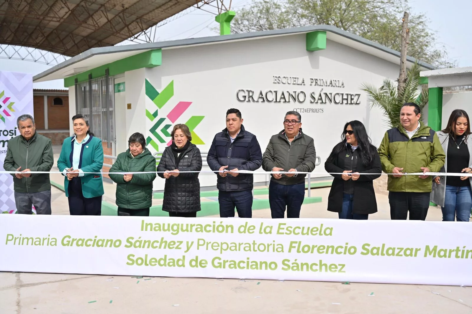 Con la entrega de la primaria “Graciano Sánchez” y la preparatoria “Florencio Salazar Martínez” en Soledad de Graciano Sánchez, el Gobernador reafirma su compromiso de atender el diálogo que se realiza con padres y madres de familia, a quien se les escucha, atiende y cumple en beneficio de sus hijas e hijos. Los nuevos planteles cuentan con seis nuevas aulas, equipadas con mesabancos y pizarrones, así como una red eléctrica segura y una cancha deportiva techada.