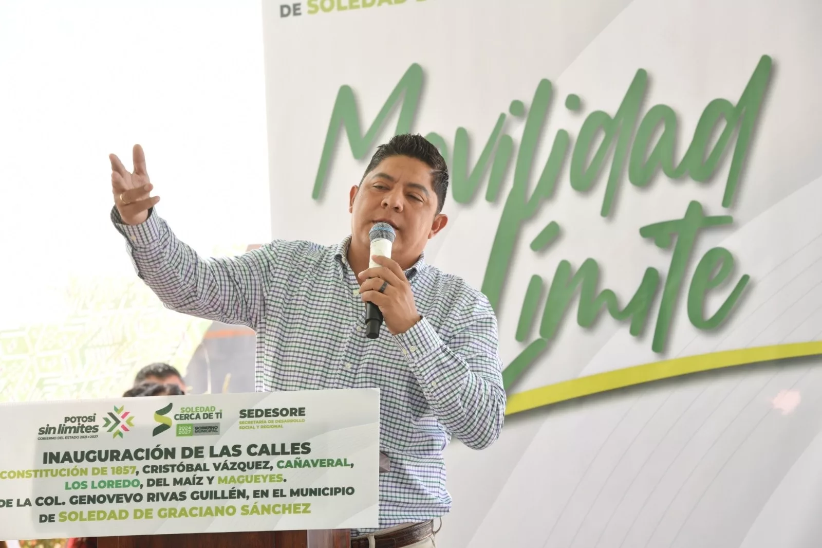 En un multitudinario evento, donde el sentir de gratitud y emoción de cientos de habitantes de Soledad de Graciano Sánchez, el Gobernador, Ricardo Gallardo Cardona, con el respaldo del Alcalde, Juan Manuel Navarro Muñiz, inauguró la modernización de las calles Constitución de 1857, Cristóbal Vázquez, Cañaveral, Los Loredo, Del Maíz y Magueyes en la colonia Genovevo Rivas Guillén Norte Quinto Plano, una obra realizada con los esfuerzos del Ayuntamiento y del Gobierno Estatal, representando una inversión superior a los 58 millones de pesos.