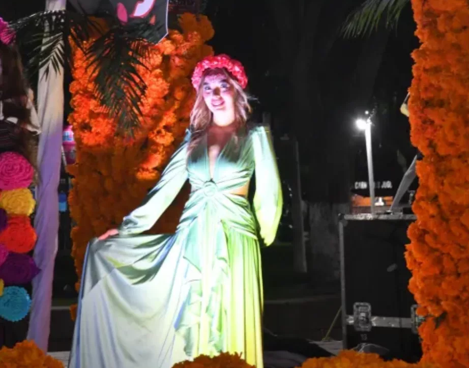 Enseguida, el centro de la Plaza se iluminó con el andar y los sones huastecos que dieron paso a la presentación de la comparsa integrada por alumnos y alumnas del Colegio de Bachilleres (COBACH) 01, quienes prendieron el ánimo de niños, jóvenes y adultos que se reunieron para presenciar esta impecable tradición y con la que se da comienzo a la Festividad de Muertos 2025 en el municipio.