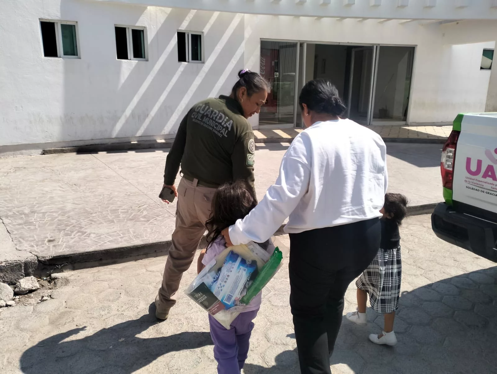 Derivado de la atención inmediata y oportuna que se brindó a reportes ciudadanos, oficiales de la Guardia Civil de Soledad de Graciano Sánchez, adscritos a la Unidad Especializada en Atención de Violencia Familiar y de Género (UAVI), reunieron a dos menores con su familia, las cuales fueron ubicadas solas en la colonia Santo Tomás.