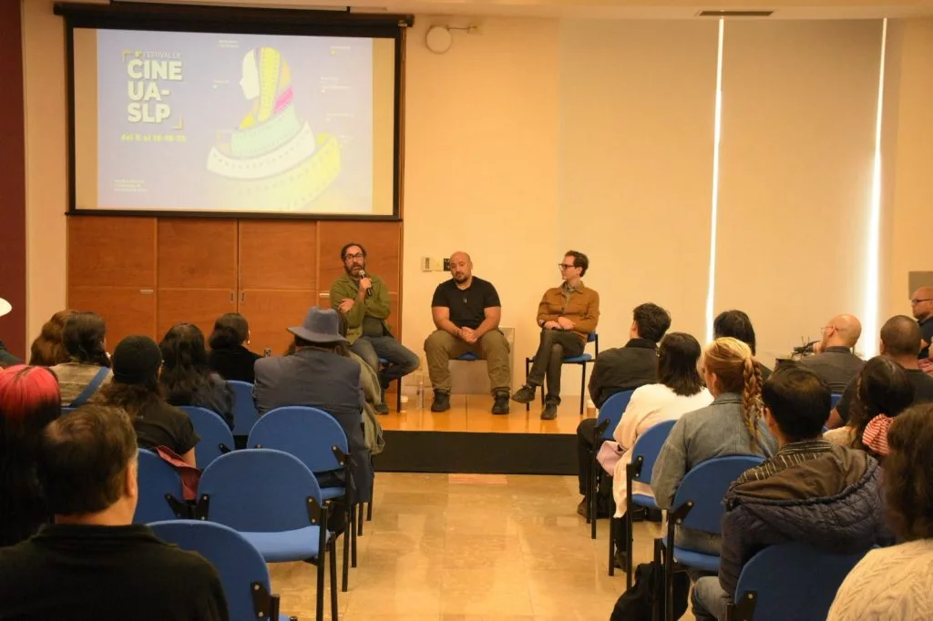En el marco del pasado 8º Festival de Cine de la Universidad Autónoma de San Luis Potosí (UASLP), se llevó a cabo la mesa de diálogo “Legislar para filmar: propuesta para la consolidación de una industria cinematográfica con ley en S.L.P.”, encabezada por Franz Vaclav Álvarez Novotny, Carlos Matienzo y Andrés Kaiser, quienes compartieron experiencias y reflexiones sobre la necesidad de fortalecer el sector cinematográfico desde un marco legal y de colaboración gremial.