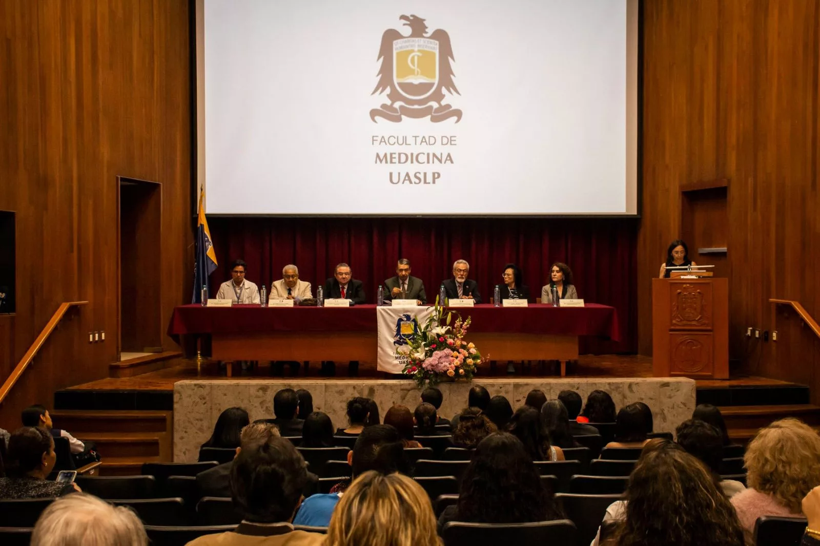 En su intervención, el rector de la UASLP, doctor Alejandro Javier Zermeño Guerra, reconoció el desempeño académico de la generación al informar que 25 de los 30 estudiantes que ingresaron lograron titularse, porcentaje que calificó como sobresaliente.