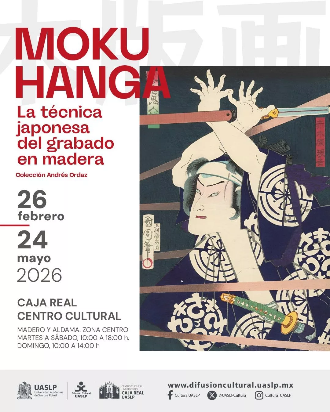 La Universidad Autónoma de San Luis Potosí, a través de la Secretaría de Difusión Cultural UASLP, presenta la exposición “Mokuhanga: La técnica japonesa de grabado en madera”, integrada por estampas de la colección particular de Andrés Ordaz. La muestra abrirá al público el jueves 26 de febrero en el Centro Cultural Universitario Caja Real.
