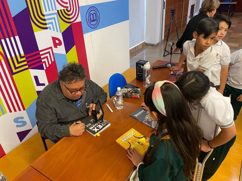 En el marco de la 49 Feria Nacional del Libro de la Universidad Autónoma de San Luis PotosFNL-UASLP), presentó su más reciente novela gráfica titulada «Rex Régum», en un encuentro lleno de curiosidad y entusiasmo con niños y niñas, quienes pudieron conocer más sobre esta obra.